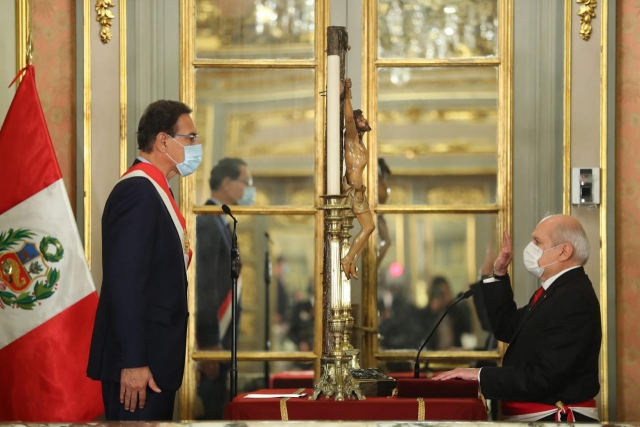 ERP. El Presidente Martín Vizcarra Cornejo tomó juramento al nuevo Gabinete Ministerial, presidido por el presidente del Consejo de Ministros, Pedro Cateriano Bellido quien retorna al cargo para reemplazar a Vicente Zeballos. Ratificaciones y nuevas designaciones en la nueva composición que le permitirá al mandatario culminar su mandato, previsto para el 28 de julio del 2021.