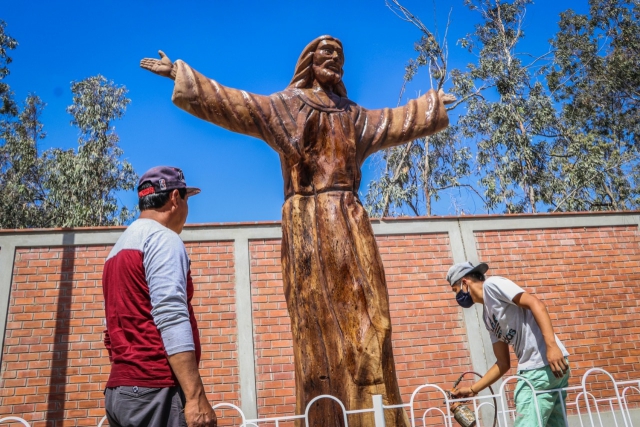 Recordó que el madero iba ser cortado de raíz y sobre sus 3 metros, pudo dar vida al Resucitado, el cual ya se encuentra en los acabados finales para su presentación a la ciudad, que ostenta el título, mediante su Semana Santa, de ser patrimonio Cultural de la Nación.