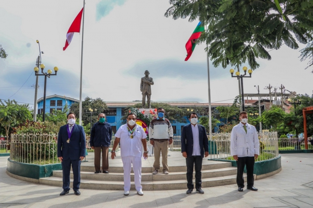 Justamente la autoridad, presidió los actos conmemorativos, en el tradicional parque que perenniza su nombre, acompañado del médico, Cristhian Requena Palacios, Secretario del Consejo Regional Séptimo de Piura, del Colegio Médico.