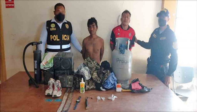 ERP. Personal policial de la comisaría de 'Veintiséis de Octubre' en la región Piura, capturó a dos integrantes de la presunta banda delincuencial denominada 'Los Rompepuertas de La Molina II', quienes momentos antes habían ingresado a una vivienda del mencionado sector donde habían hurtado bienes y enseres.