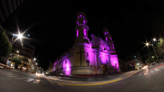 Catedral de Piura se ilumina de morado | Foto: Sixcom Media.