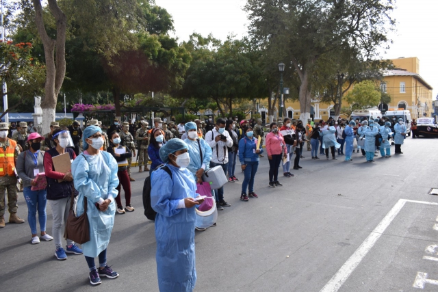 El Gobierno Regional de Piura unió esfuerzos con el Ejército, Indeci, el Ministerio de Desarrollo e Inclusión Social, la Policía y la comuna provincial para poder llevar a cabo esta actividad multisectorial contra la COVID-19.