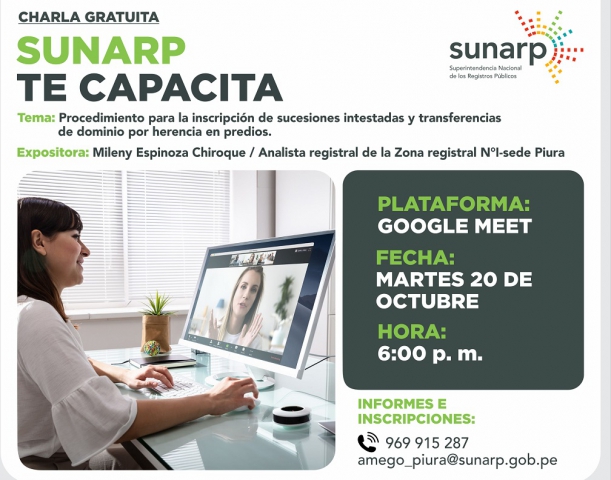 ERP. Con el objetivo de promover el desarrollo sostenido de una cultura registral y brindar capacitación a los usuarios en diversos temas registrales, la Sunarp Piura viene organizando conferencias virtuales gratuitas, las mismas que están enmarcadas dentro de su programa denominado “Sunarp te Capacita”.