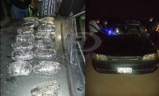 Los intervenidos por personal perteneciente al Área Antidrogas del Departamento de Investigación Criminal (DIVINCRI) Piura y representante del Ministerio Público se desplazaban en un vehículo marca Toyota, modelo Caldina, color azul oscuro metálico, placa de rodaje C4D526, conducido por Deyber Gilberto Huancay Facundo (24), y Segundo Huamán Guerrero (38), en condición de copiloto.