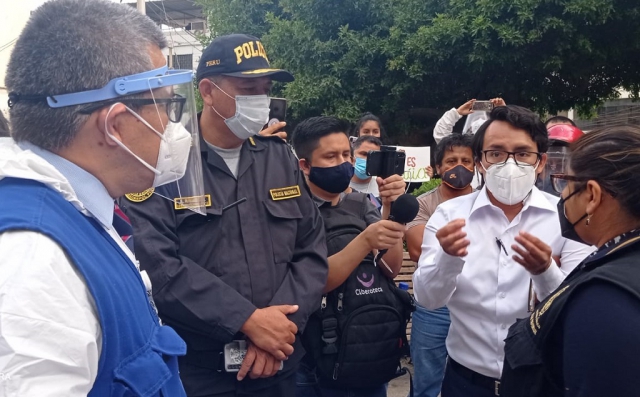 En la Plazuela Merino y en el Óvalo Grau, puntos de partida de las manifestaciones, se verificó la presencia de un grupo de personas que se encontraba protestando con pancartas y que cumplía con el uso de mascarillas y la aplicación del distanciamiento social en cumplimiento de las medidas sanitarias por Covid-19.