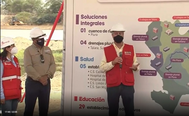 Asimismo, Moreno Vizcardo, quien continuará en el cargo a decir del presidente Sagasti, informó sobre los drenajes pluviales de Piura, Sullana, Talara y Paita, los cuales se encuentran en proceso mediante la modalidad Gobierno a Gobierno, los 5 establecimientos de salud en Chulucanas, Castilla, Sullana, entre otros que permitirán mejorar las condiciones de vida de la población, además de la construcción de 29 instituciones educativas en la región.