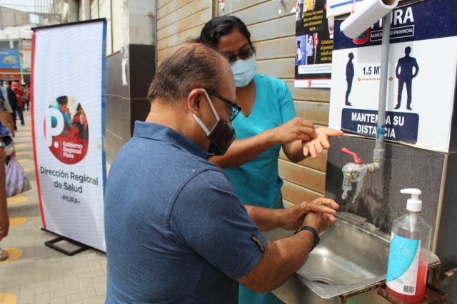 ERP. Con la finalidad de prevenir el coronavirus, la Dirección Regional de Salud (DIRESA) Piura realizó una sesión educativa y demostrativa sobre el correcto lavado de manos, distanciamiento físico y uso correcto de mascarilla en el boulevard del Mercado Modelo de Piura, dónde participaron más de trescientas personas.