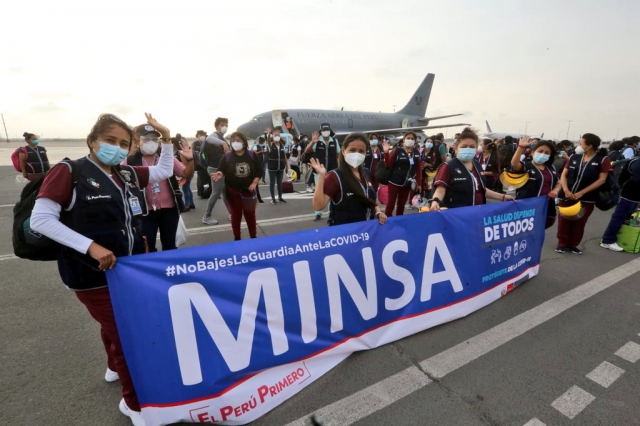 ERP. Un equipo de 90 profesionales de la salud del Minsa llegaron esta tarde a la región Piura con el objetivo de apoyar a las autoridades locales en el fortalecimiento de servicios para la detección temprana, el aislamiento y el seguimiento de contactos en la lucha contra la COVID 19.