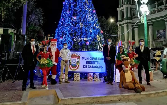 A su turno, con la asistencia del Dr. Alcibíades Sime Márquez, director General de la U. C.V Campus Piura, junto al primer regidor, Ing. Alexis Aguilar Correa, en representación del alcalde José Muñoz Vera, se encendió el árbol navideño, instalado en la plaza de armas.