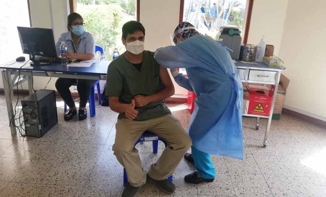 “Invito a nuestro personal a que aprovechemos esta oportunidad que tenemos para poder protegernos y dar protección a nuestras familias y pacientes que día a día luchan contra este mal”, expresó Céspedes Medrano.