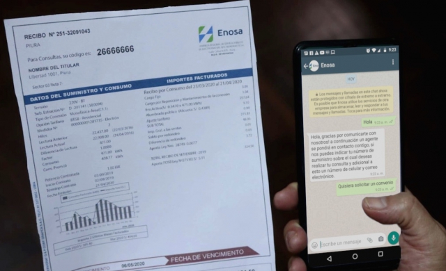 Para acceder a los convenios de pago, los clientes pueden comunicarse a través del Facebook Enosa Oficial, el WhatsApp 991 334 000 o el correo electrónico