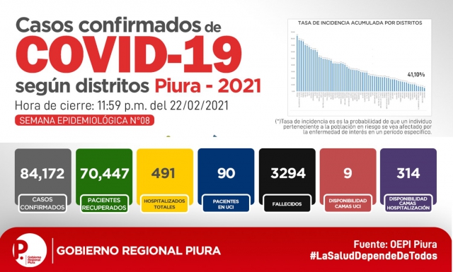 ERP. "No bajemos la guardia" dice la promoción o propaganda para evitar contagios; sin embargo, los casos se vienen incrementando y las camas UCI disminuyendo de acuerdo al reporte del 23 de febrero a cargo de la Oficina de Epidemiología de la Dirección Regional de Salud. A la fecha indicada solo se tiene 9 camas UCI disponibles en caso que hayan pacientes graves en tanto que los hospitalizados suman 491.