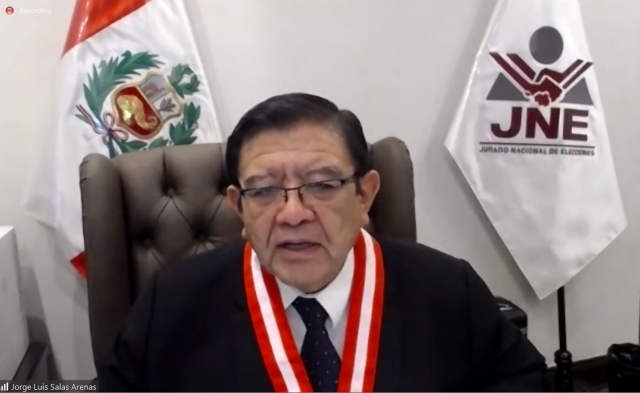 ERP. El presidente del Jurado Nacional de Elecciones (JNE), Jorge Luis Salas Arenas, enfatizó que el organismo que dirige cumple lo que señalan las leyes que ha dictado el Congreso del Perú que han colocado al Jurado Electoral Especial y al Jurado Nacional de Elecciones en el deber de pronunciarse sobre las acciones de fiscalización de las hojas de vida de los candidatos y tener que excluir por ese motivo a los que incumplen aquellos estándares.