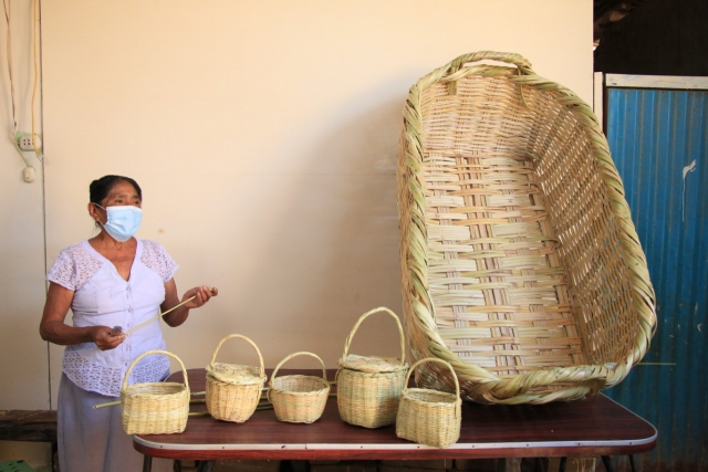 Esta heredera del tejido de canastas, nos cuenta que antiguamente sus productos eran muy solicitados por las amas de casa, pero todo cambió con la aparición del plástico, que incluso es más económico. “Con los bajos precios de las canastas es difícil sobrevivir, pero gracias a la ayuda que recibo del programa Juntos puedo proveer a mi familia de artículos de primera necesidad”, dice María Ynés.