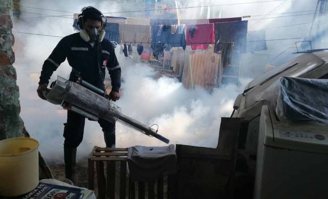 Las tareas de nebulización espacial se iniciaron el 17 de marzo y hoy sábado se logró fumigar 656 viviendas, mientras que 82 se encontraban cerradas y 31 renuentes. En dicha actividad participaron 30 fumigadores, anotadores y jefes de brigadas.