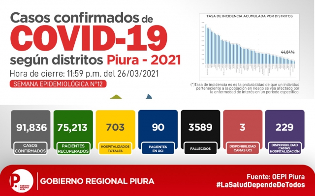 El reporte corresponde al 27 de marzo, 00 horas, donde se precisa que la mayor cantidad de casos de Covid-19 se encuentran en la provincia de Piura, seguida de Sullana, Talara, Paita, Morropón, Sechura, Ayabaca y Huancabamba.