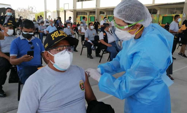 ERP. El Gobierno Regional Piura a través de la Dirección Regional de Salud inició el proceso de vacunación a más de mil efectivos de la Policía Nacional del Perú a fin de que estén más protegidos y puedan seguir luchando en primera línea contra la pandemia, así lo informó José Nizama Elías, titular de la Diresa.