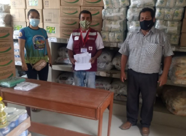 ERP. En el marco del modelo de cogestión del Programa Nacional de Alimentación Escolar Qali Warma del Ministerio de Desarrollo e Inclusión Social, vigilantes sociales de la región Piura verifican la distribución de 1941 toneladas de alimentos que son entregados a las madres, padres y apoderados de los escolares, como parte de la segunda entrega.
