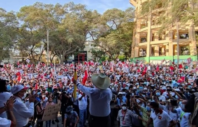 ERP. El candidato presidencial Pedro Castillo Terrones, realizó una visita hacia la región Piura, realizando diversas actividades desde tempranas horas y culminando con un mitin que concentró a miles de piuranos y puranas, ávidos de conocer las propuestas de gobierno en caso de ganar las elecciones el próximo 6 de junio. Toda una multitud desafió el peligro de contagio y se concentró en el parque Teniente Miguel Cortés.
