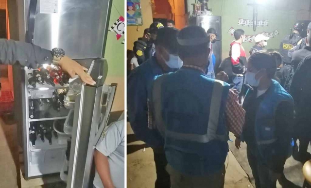 ERP. Con refrigeradora llena de botellas de cervezas y música a alto volumen, personal de Serenazgo, Fiscalización y los efectivos policiales de la Comisaría de El Indio, encontraron a 25 personas en una vivienda ubicada en la calle Las Brisas Mz E lote 11, en el A.H. El Indio, cuando celebraban un cumpleaños.