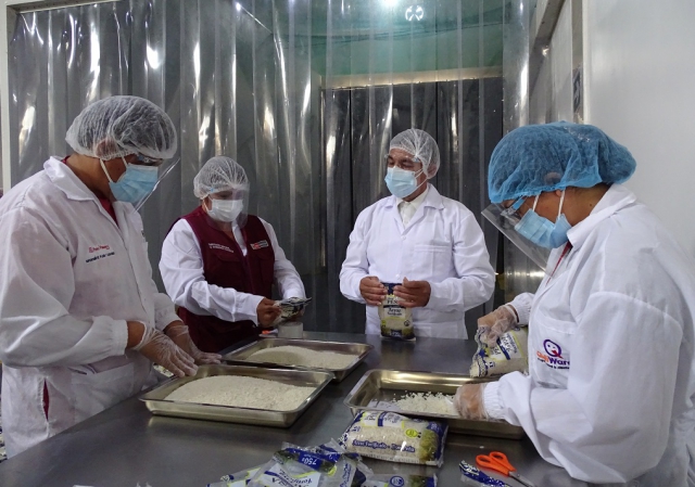 Constataron las instalaciones y el acopio de los productos y evaluaron las características organolépticas (olor, sabor, color, textura) del arroz fortificado, que cuenta con ocho vitaminas y dos minerales añadidos.