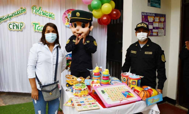 El Regidor Mijahuanga, en representación del alcalde José Aguilar Silva, señaló que el Poliwawa nace de la preocupación que había por los niños que venían acompañados con sus familiares cuando llegaban a por alguna denuncia; en ese sentido, el alcalde gestionó el trabajo en equipo para la creación del espacio para brindar seguridad y tranquilidad en los menores.