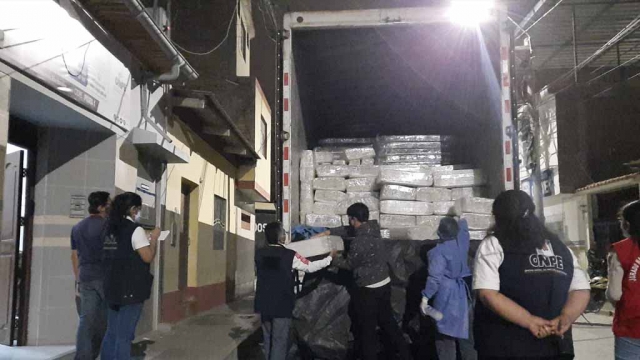 Con resguardo policial, fiscalización del Jurado Electoral Especial Piura 1 y acompañado del personal ONPE, llegó el camión que trasladó 1441 paquetes con el material electoral desde la sede central a la ODPE Piura 1.