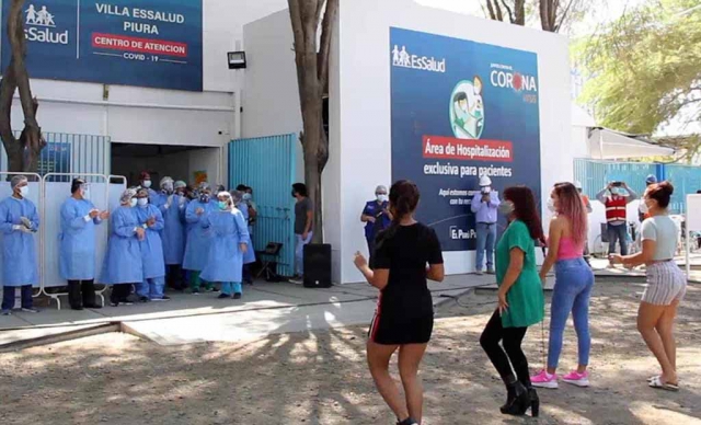 ERP. A un año del funcionamiento de la Villa EsSalud Piura, primer centro Covid-19 de la región, donde se brinda atención especializada a personas diagnosticadas con este mal, la agrupación de cumbia Corazón Serrano sorprendió al personal de salud y a los pacientes de este espacio de aislamiento con canciones alentadoras.