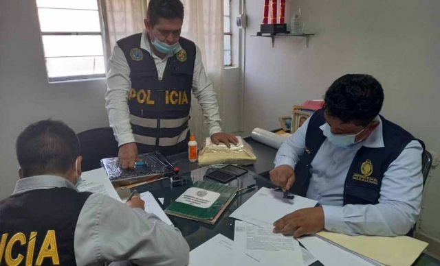 Los fiscales Javier Lopez Romani, José Jiménez Moscol y Fyorella Montero Talledo, del 3° despacho de la Fecof Piura, con el apoyo de personal policial de la Dirección contra la Corrupción de la PNP (Dircocor), intervinieron simultáneamente la oficina del comisario, la oficina del Área de Tránsito y el depósito de vehículos intervenidos, deteniendo preliminarmente a ambos efectivos e incautando sus equipos celulares, así como dinero en efectivo.