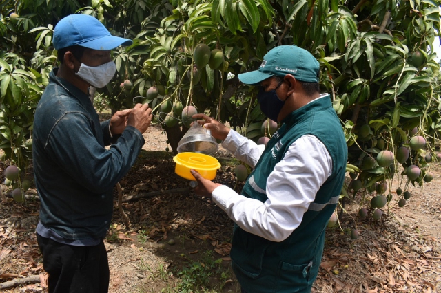 Dato: En el ámbito del proyecto en Piura, el SENASA tiene instalada un sistema de vigilancia de moscas de la fruta compuesta por 9795 trampas oficiales; además, interviene en su etapa de supresión y control alrededor de 77.541 hectáreas hortofrutícolas.