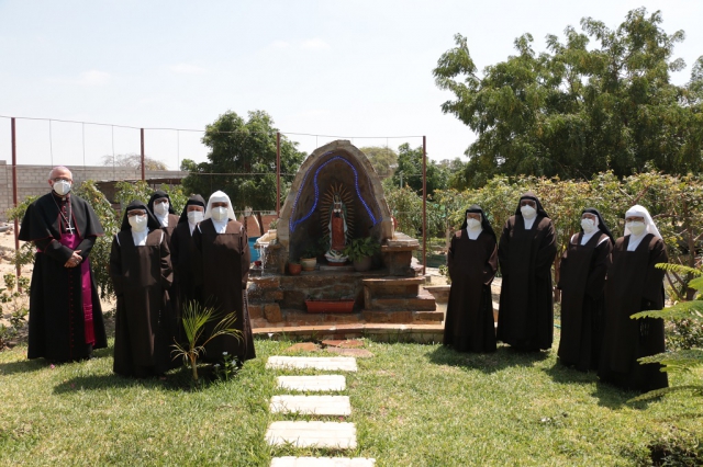 Por su parte la Madre María Guadalupe del Niño Jesús agradeció a sus hermanas por la confianza depositada en ella y dijo: “Son ya doce años que tenemos en Piura y si tuviera que utilizar una sola palabra diría que es agradecimiento. En primer lugar, agradecida infinitamente con Dios nuestro Señor por estos años de fecundidad que ya nos han regalado cuatro vocaciones oriundas de Piura, Sullana y Tumbes. En segundo lugar, agradecidas con Monseñor José Antonio quien es el gran artífice de nuestra venida, pues gracias a sus oraciones y ayuda estamos ahora aquí. Pero también agradecidas con esta ciudad y su gente que desde nuestra llegada sólo nos han brindado cariño, confianza y acogida, respaldándonos en cada una de nuestras iniciativas y proyectos. Nosotras cada día oramos intensamente por cada uno de los piuranos y tumbesinos, por los bienhechores que han hecho posible la construcción de nuestro Monasterio y por todos aquellos que vienen diariamente hasta aquí para pedirnos oraciones. Nosotras sentimos cada día la alegría de nuestra entrega aquí en Piura, estamos contentas de poder responder al llamado del Señor para la evangelización de esta querida ciudad que es nuestra casa”.