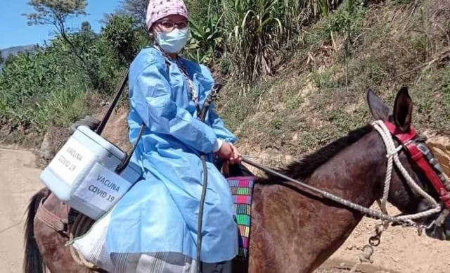 Las enfermeras a cargo del proceso de inmunización llegaron al distrito de Santa Catalina de Mossa, en Morropón, para iniciar la aplicación de las dosis en la población mayor de 60 años. Las brigadas de la provincia de Morropón, quienes avanzan en acémila y también camino, para llegar al centro poblado en la cual procederán a realizar la vacunación respectiva; es un tránsito difícil, pero no amilana a estas verdaderas heroínas y héroes de la salud, quienes respondieron antes y lo hacen ahora, para lograr que piuranas y piuranos en general no sucumban ante el coronavirus.