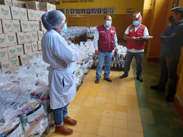 Los alimentos otorgados a la entidad edil contienen conservas de pescado, leche evaporada entera, arroz, fideos, hojuelas de avena con quiwicha, frijol, lenteja, aceite vegetal y azúcar rubia.