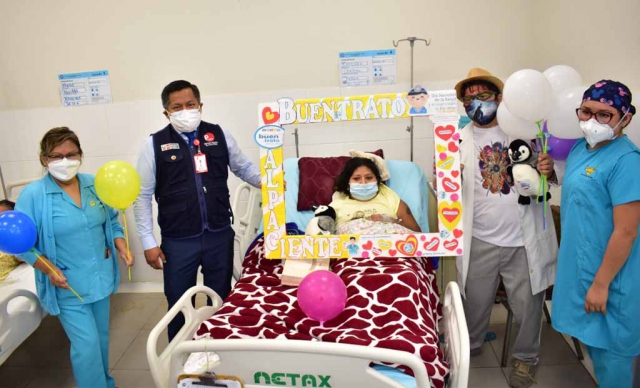 Como parte de las actividades por el Día Nacional de la Salud y el Buen Trato al Paciente, el director regional de Salud, José Nizama Elías, junto a un clown y el equipo de Promoción de la Salud de Diresa, recorrió el hospital Santa Rosa para llevar un mensaje de esperanza y fortaleza a los pacientes que vienen recuperándose en este nosocomio.