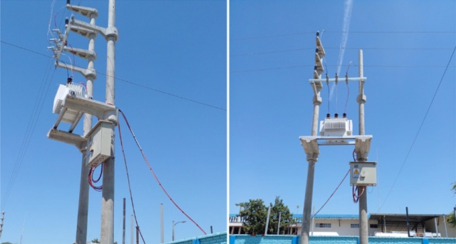 Como parte de su compromiso con el sector salud, el personal de Enosa estuvo trabajando durante el fin de semana, en el montaje de una subestación de distribución biposte y un transformador de 250 kVA, que permitirá atender en baja tensión y en forma exclusiva, a las inmediaciones de la nueva planta de oxígeno, sin que se vea afectada por consumos externos.