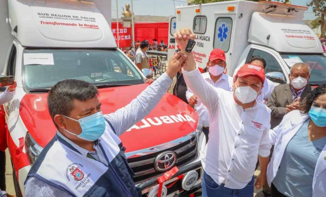 En lo que va de la gestión regional, se han entregado 14 ambulancias en las mencionadas jurisdicciones, 6 ambulancias en la provincia de Paita, distribuidas en Vichayal, Tamarindo, el Hospital Las Mercedes, El Arenal, La Huaca y Juan Valer. Asimismo, en la provincia de Sullana se han entregado 8 ambulancias, distribuidas en los centros de salud de Lancones, Marcavelica, Ignacio Escudero, Querecotillo, Bellavista, Miguel Checa y al Hospital de Sullana.