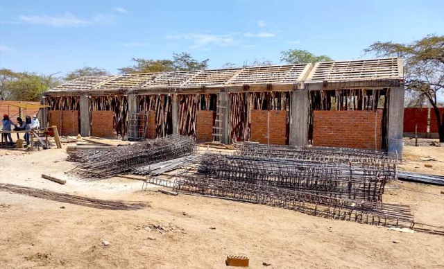La obra que registra un aproximado de 35 por ciento, avanza en varios frentes con trabajos de habilitación de fierro, encofrado de techo, asentado de ladrillo, entre otros.