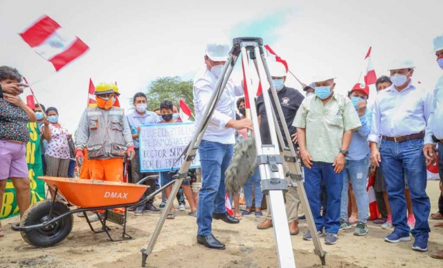 ERP. El gobernador regional de Piura, Servando García Correa colocó la primera piedra y dio inicio a los trabajos de la obra de renovación de redes de agua y alcantarillado del A. H. 31 de Enero, en el distrito de Veintiséis de Octubre, ofreciendo una vida más digna y saludable para sus miles de habitantes.