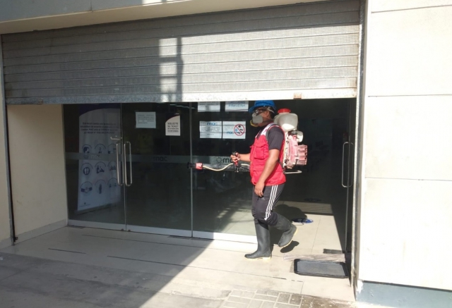 ERP. El Gobierno Regional de Piura, a través del COER, en una acción orientada a reducir la carga viral de distintos locales públicos que por la naturaleza del servicio que prestan a la comunidad, registran una gran afluencia de público, viene realizando jornadas de desinfección a efectos de prevenir los contagios del coronavirus.