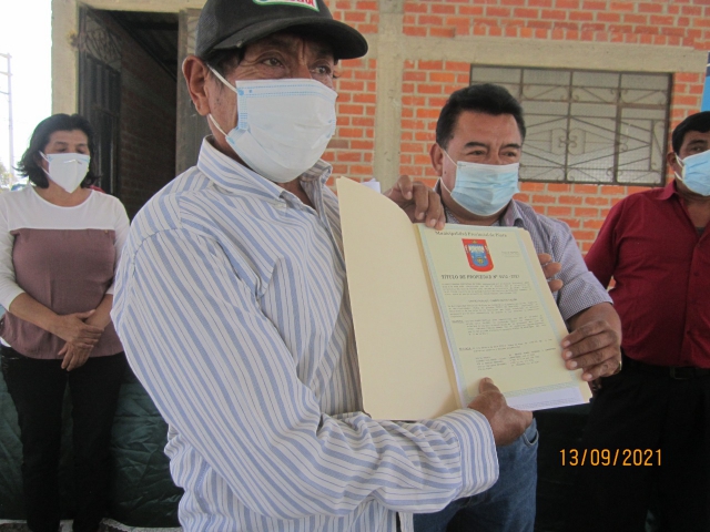 "Hoy se hace realidad el sueño anhelado por todos ustedes. A partir de hoy son propietarios legítimos de sus predios y podrán acceder a los programas sociales de vivienda que ofrece el gobierno central de manera individual y colectiva para mejorar la calidad de vida de sus familias", sostuvo Macalupú Zapata.