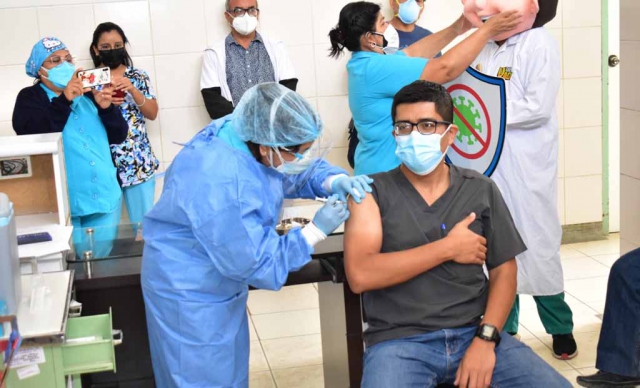 ERP. El Gobierno Regional de Piura, a través de la Dirección Regional de Salud inició la aplicación de la tercera dosis de la vacuna contra la COVID-19 al personal de salud que se mantiene en la primera línea de lucha contra la pandemia.