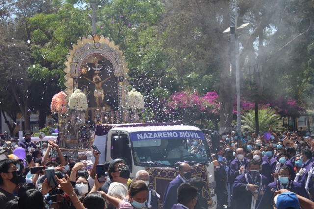 Concluida la Eucaristía, la Sagrada Imagen del “Cristo Moreno” salió cargada en hombros de Monseñor y de los miembros de la Hermandad del «Señor de los Milagros» de la Ciudad y a bordo del Nazareno Móvil realizó un recorrido por las principales calles y avenidas de Piura, con rumbo al Monasterio «Santa Teresita del Niño Jesús» de las Madres Carmelitas Descalzas, Guardianas del Señor, donde fue guardado hasta el próximo mes de Octubre en que volverá a salir. El recorrido se realizó con la autorización y el resguardo de nuestra Policía Nacional, y acompañados del cuerpo de Serenazgo Municipal de Piura y del Distrito 26 de Octubre.