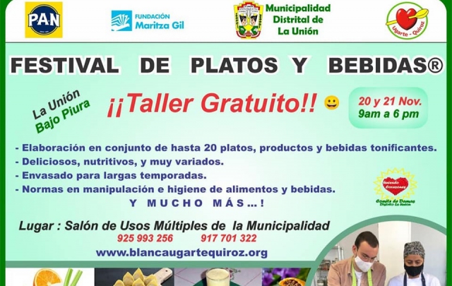 ERP. Con el fin de motivar a la población a consumir alimentos saludables y oriundos de la región Piura, la Gerencia de Desarrollo Social de la Municipalidad Distrital de La Unión viene invitando al seminario taller gratuito el 20 y 21 de noviembre desde las 9 am hasta las 6 pm.