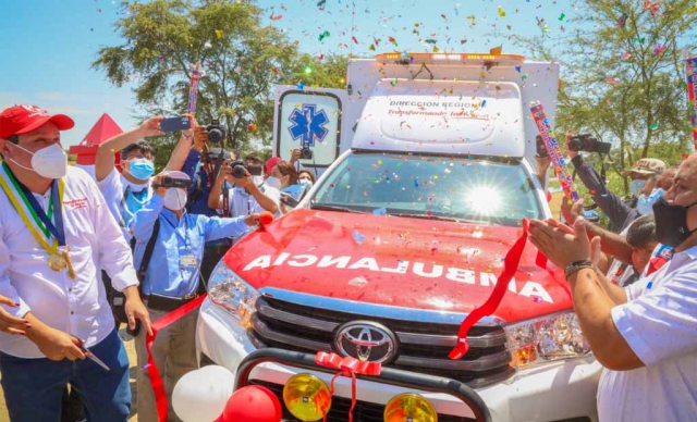 ERP. El gobernador regional, Servando García entregó una moderna ambulancia al centro poblado Casagrande, a favor de 15 mil pobladores. La entrega se realizó durante la ceremonia de inauguración de la carretera Puente Mocho - Casagrande.