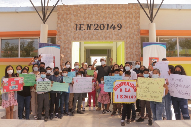 Asimismo, la reconstrucción de la institución educativa primaria N° 20149 en el caserío San Juan de Curumuy” comprendió la construcción de 6 aulas, servicios higiénicos para niños y personal docente, patio central, cerco perimétrico, biblioteca y ambientes exteriores, así como la adquisición de mobiliario y equipamiento.