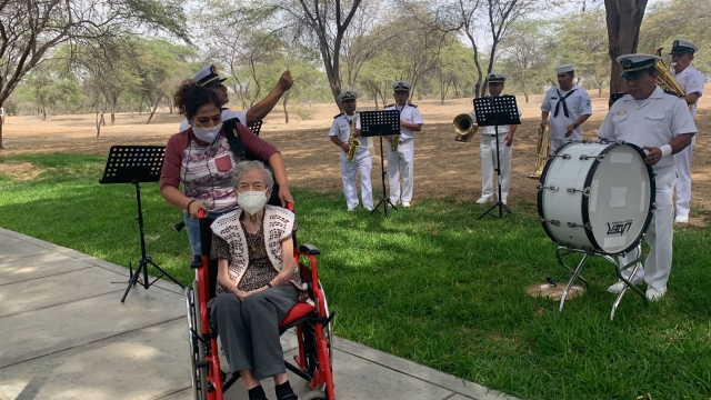 En efecto, al ritmo de Marinera y otras canciones entonadas por la banda de músicos de la gloriosa Marina de Guerra del Perú, los adultos mayores de 70 años reciben la dosis de refuerzo contra la COVID-19 . Este simbólico hecho se realiza en el centro de vacunación de la Universidad de Piura, quien atienen con una cantidad de hasta 1500 dosis de vacuna Pfizer.