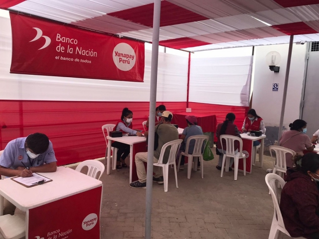 ERP. En estos espacios se pagará únicamente el apoyo económico Yanapay.. A fin de facilitar la entrega del apoyo económico Yanapay a los beneficiarios del Grupo 4, conformado por más de 3.1 millones de ciudadanos, el Banco de la Nación ha implementado cuatro agencias móviles en la región de Piura para entregar únicamente el subsidio económico.