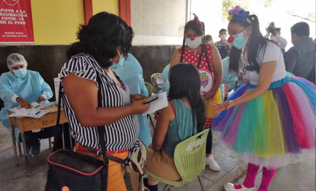 ERP. El Gobierno Regional de Piura a través de la Dirección Regional de Salud (Diresa) Piura inició la vacunación contra el Covid-19 a niños de 5 a 11 años en el colegio San Miguel y otros puntos de vacunación de la región. En esta primera etapa se inoculará a los menores que padezcan de alguna comorbilidad y a los de 10 y 11 años sin comorbilidades.