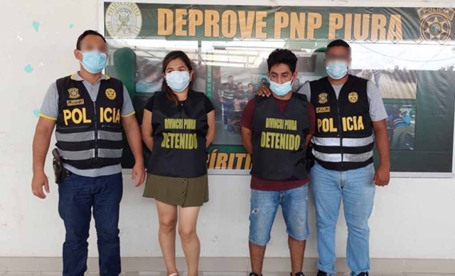 El agraviado junto a la policía citaron a la pareja a inmediaciones del parque Luis Montero del distrito de Castilla, a dicho lugar llegaron Oscar Abad Marchan (31) y Jessenia Mercedes Castro Cotos (32) a bordo de la motocicleta siendo capturados por los efectivos policiales.