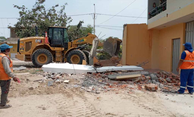 ERP. La Municipalidad Distrital de Castilla inició el proceso de demolición de 15 viviendas, ubicadas en el asentamiento humano Chiclayito, a la altura del Polideportivo del sector. Dichos inmuebles prolongaron sus límites de manera indebida, al usar parte de la vía pública para sus construcciones, algunos propietarios son reincidentes.